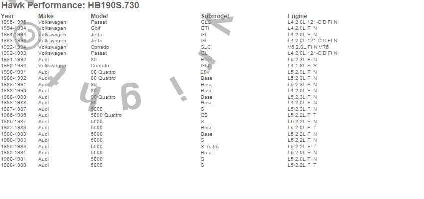 Below is an abreviated list of applications for the Disc Brake Pad.