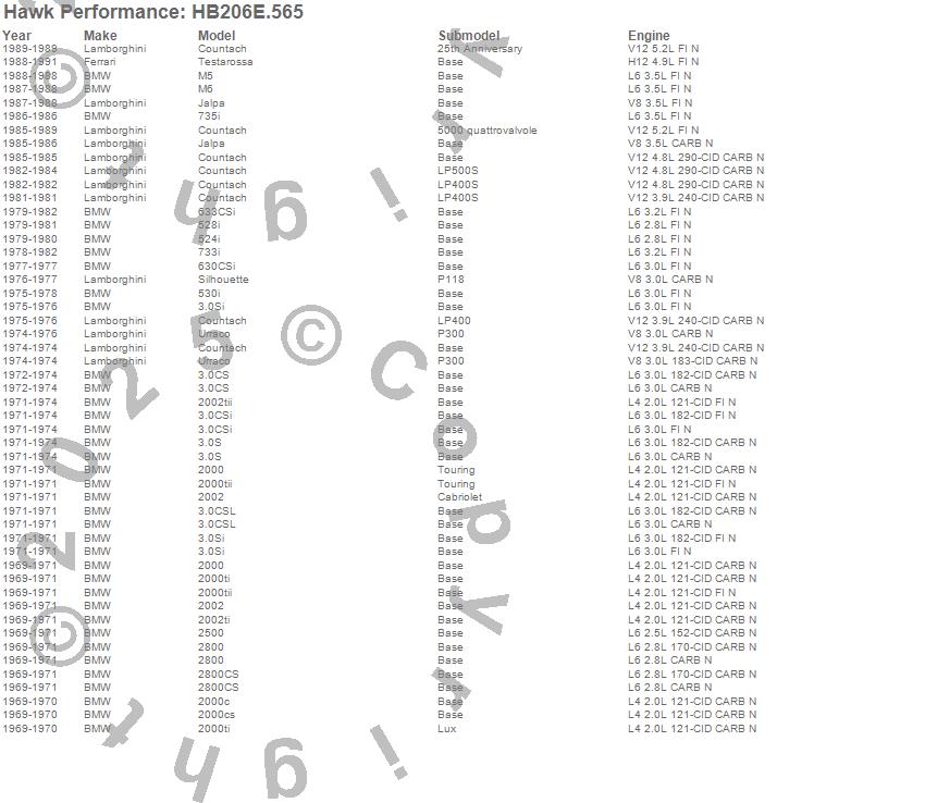 Below is an abreviated list of applications for the Disc Brake Pad.