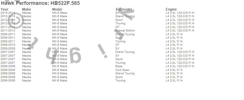 Below is an abreviated list of applications for the Disc Brake Pad.