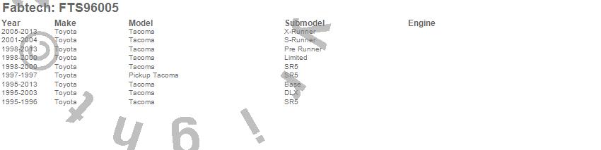 Below is an abreviated list of applications for the Tie Rod Assembly. Tacoma, Toyota, 2013, 2012, 2011, 2010, 2009, 2008, 2007, 2006, 2005, 2004, 2003, 2002, 2001, 2000, 1999, 1998, 1997, 1996 more…