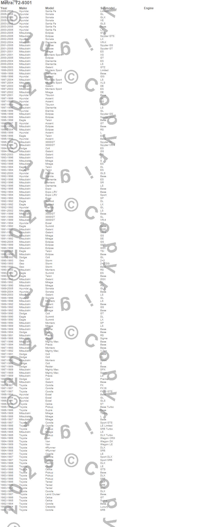 3000GT, 4Runner, Accent, Camry, Celica, Colt, Corolla, Cressida, Diamante, Eclipse, Elantra, Excel, Expo, Expo LRV, Galant, Land Cruiser, Mighty Max, Mirage, Montero, Montero Sport more…