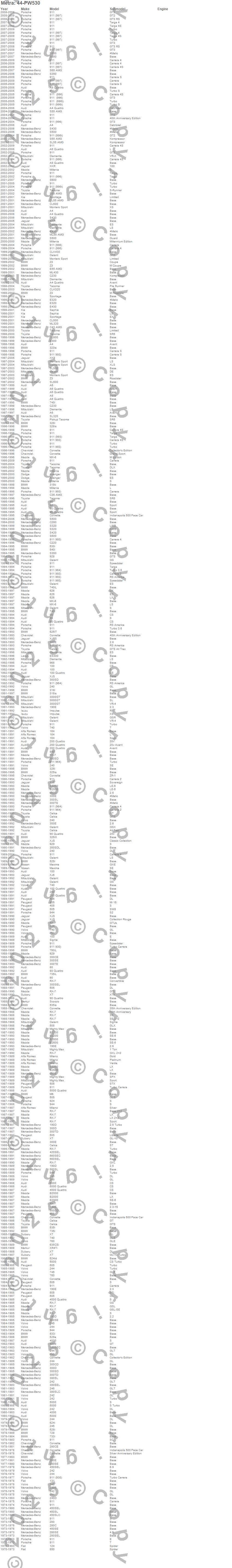 100, 100 Quattro, 124, 131, 164, 190D, 190E, 200, 200 Quattro, 240, 240D, 242, 244, 245, 260E, 280, 280C, 280CE, 280E, 280S more…