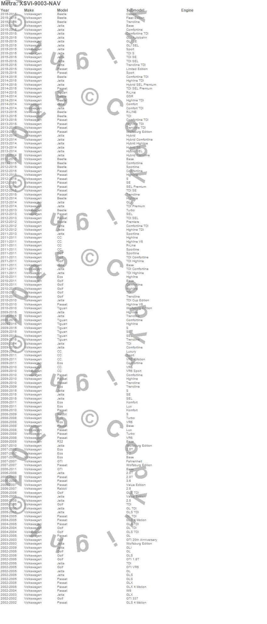 Metra XSVI Interface # XSVI-9003-NAV - Provides +12 Volt Accessory Output For Vehicles That Data Control Signals - Provides Outputs For VSS/Parking Brake/Reverse