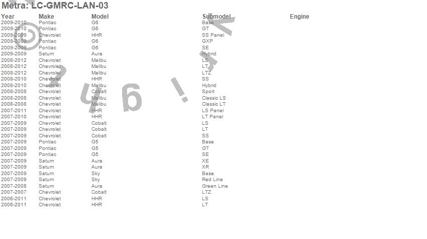 Metra LC-GMRC-LAN Interface # LC-GMRC-LAN-03 - Provides +12-Volt Accessory Output - Retains Warning Chimes