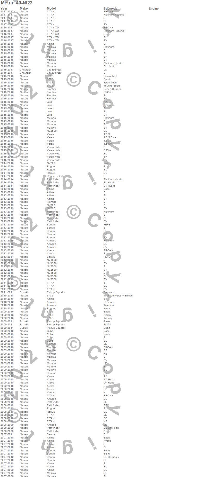 370Z, Altima, Armada, Cube, Equator, Frontier, Maxima, Murano, Pathfinder, Rogue, Sentra, Versa, Xterra, Nissan, Suzuki, 2011, 2010, 2009, 2008, 2007 more…