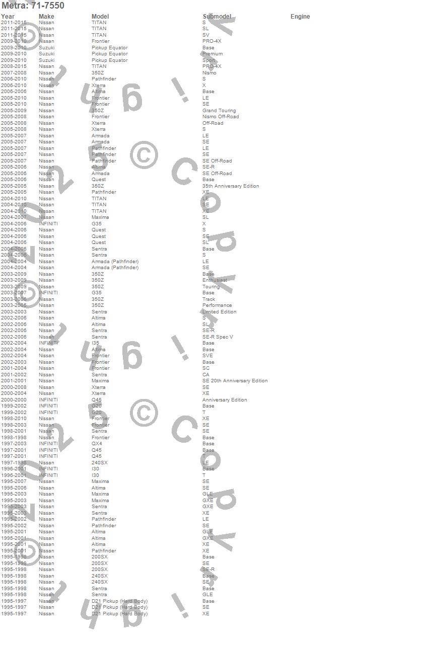 200SX, 240SX, 350Z, Altima, Armada, D21 Pickup (Hard Body), Equator, Frontier, G20, G35, I30, I35, Maxima, Pathfinder, Q45, Quest, QX4, Sentra, Titan, Xterra more…