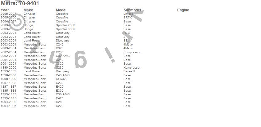 C220, C230, C240, C280, C32 AMG, C320, C36 AMG, C43 AMG, CLK320, Crossfire, Discovery, E300, E420, Sprinter 2500, Sprinter 3500, Chrysler, Dodge, Land Rover, Mercedes-Benz, 2007 more…