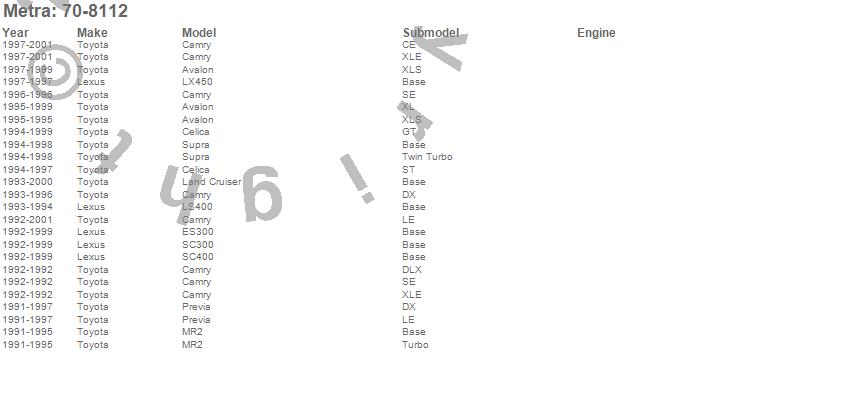 Avalon, Camry, Celica, ES300, Land Cruiser, LS400, LX450, MR2, Previa, SC300, SC400, Supra, Lexus, Toyota, 2001, 2000, 1999, 1998, 1997, 1996 more…