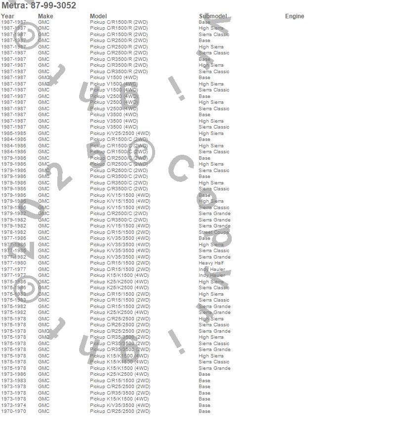 C15/C1500, C1500, C25/C2500 Pickup, C2500 Pickup, C35/C3500 Pickup, C3500 Pickup, K15/K1500, K1500, K25 Pickup, K25/K2500 Pickup, K2500 Pickup, K35 Pickup, K35/K3500 Pickup, K3500 Pickup, R1500 Pickup, R2500 Pickup, R3500 Pickup, V1500 Pickup, V2500 Pickup, V3500 Pickup more…