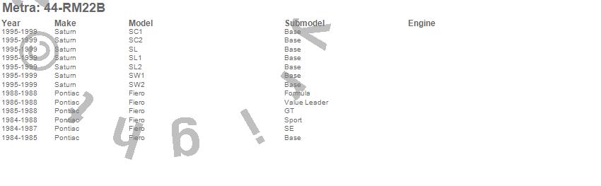 Fiero, SC1, SC2, SL, SL1, SL2, SW1, SW2, Pontiac, Saturn, 1999, 1998, 1997, 1996, 1995, 1988, 1987, 1986, 1985, 1984 more…