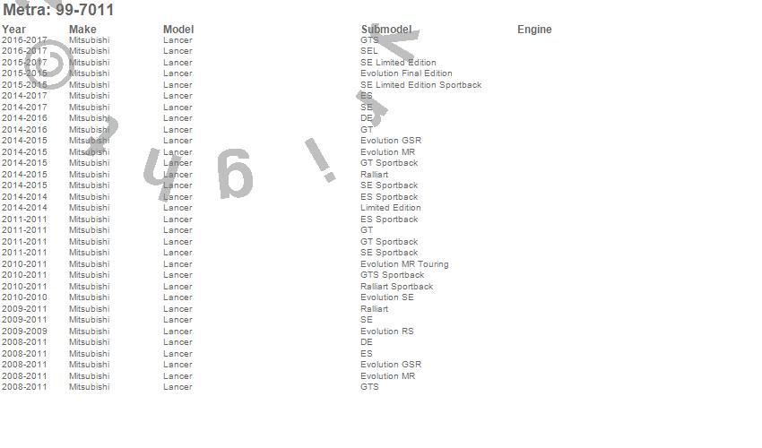 Metra TURBOKits Radio Installation Kit 99-7011 Features: