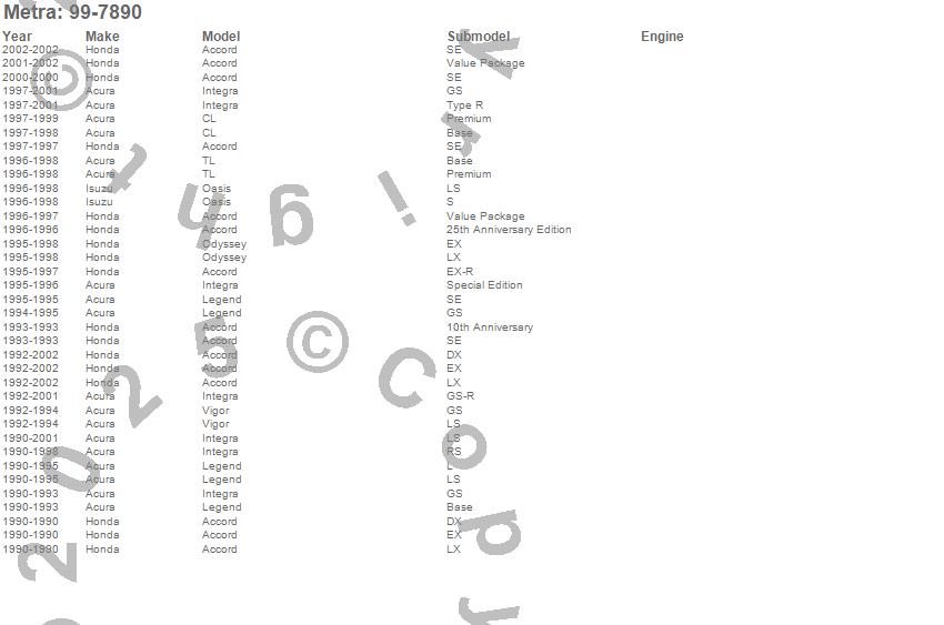 Accord, CL, Integra, Legend, Oasis, Odyssey, TL, Vigor, Acura, Honda, Isuzu, 2002, 2001, 2000, 1999, 1998, 1997, 1996, 1995, 1994 more…