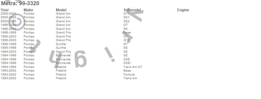 Bonneville, Firebird, Grand Am, Grand Prix, Sunfire, Pontiac, 2003, 2002, 2001, 2000, 1999, 1998, 1997, 1996, 1995, 1994, 1993 more…