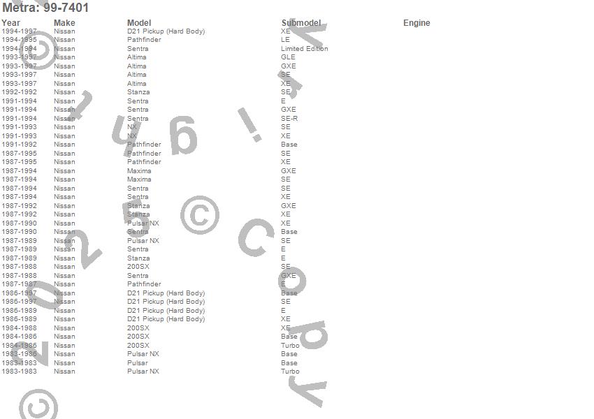 200SX, Altima, D21 Pickup (Hard Body), Maxima, NX, Pathfinder, Pulsar, Pulsar NX, Sentra, Stanza, Nissan, 1997, 1996, 1995, 1994, 1993, 1992, 1991, 1990, 1989 more…
