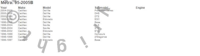 DeVille, Eldorado, Seville, Cadillac, 2005, 2004, 2003, 2002, 2001, 2000, 1999, 1998, 1997, 1996 more…