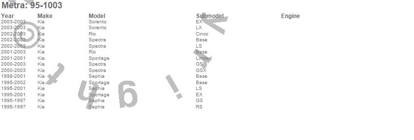 Rio, Sephia, Sorento, Spectra, Sportage, Kia, 2003, 2002, 2001, 2000, 1999, 1998, 1997, 1996, 1995 more…