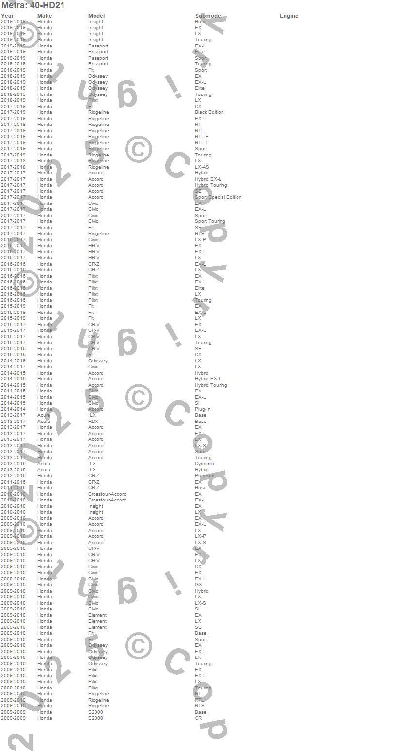 Accord, Accord Crosstour, Civic, CR-V, Element, Fit, Insight, Odyssey, Pilot, Ridgeline, S2000, Honda, 2010, 2009 more…