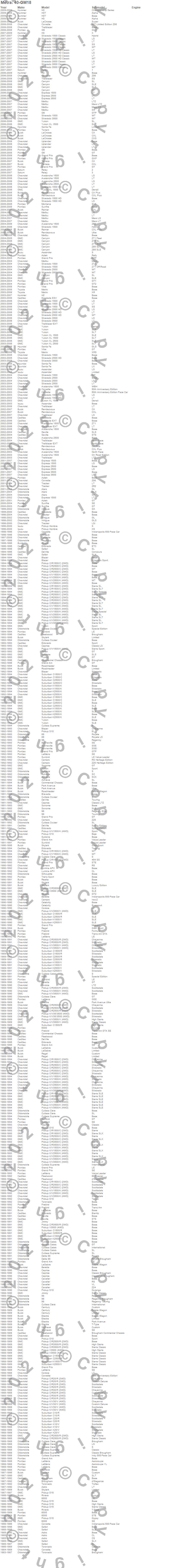 6000, 88, 98, Achieva, Alero, Ascender, Astro, Avalanche 1500, Avalanche 2500, Aztek, Beretta, Blazer, Bonneville, Bravada, Brougham, C1500, C1500 Pickup, C1500 Suburban, C2500 Pickup, C2500 Suburban more…