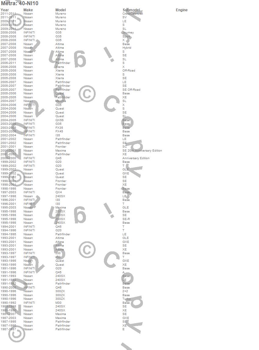 200SX, 240SX, 300ZX, Altima, Frontier, FX35, FX45, G20, G35, I30, I35, J30, M30, Maxima, Murano, Pathfinder, Q45, Quest, QX4, QX56 more…