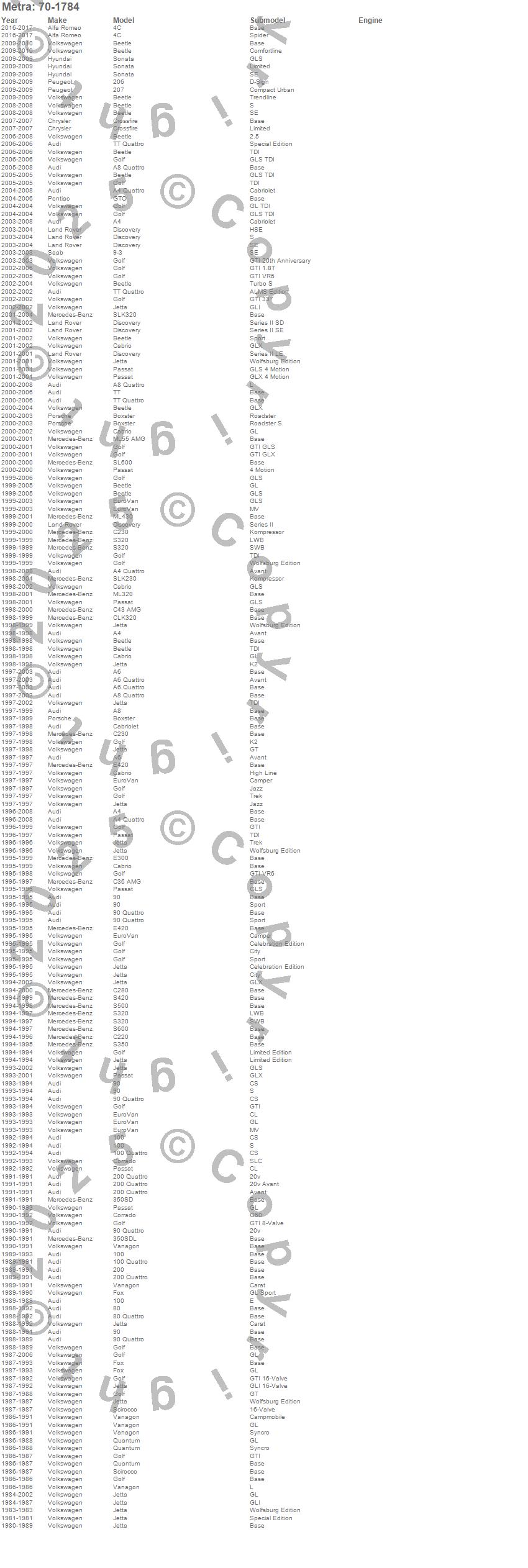 100, 100 Quattro, 200, 200 Quattro, 350SD, 350SDL, 80, 80 Quattro, 9-3, 90, 90 Quattro, A4, A4 Quattro, A6, A6 Quattro, A8, A8 Quattro, Beetle, Boxster, C220 more…