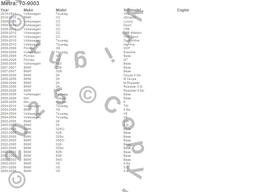 325Ci, 325i, 325xi, 328i, 330Ci, 330i, 330xi, 335i, 525i, 530i, 540i, CC, Cooper, G8, R32, Touareg, X3, X5, Z4, BMW more…