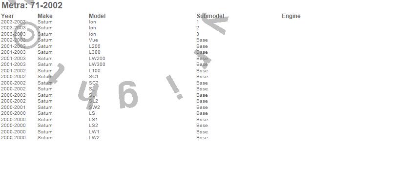 Ion, L100, L200, L300, LS, LS1, LS2, LW1, LW2, LW200, LW300, SC1, SC2, SL, SL1, SL2, SW2, Vue, Saturn, 2003 more…
