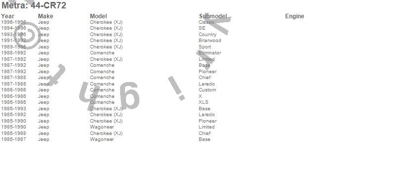 Cherokee (XJ), Comanche, Wagoneer, Jeep, 1996, 1995, 1994, 1993, 1992, 1991, 1990, 1989, 1988, 1987, 1986, 1985 more…