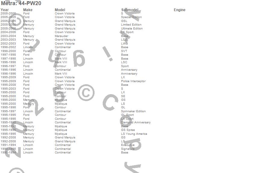 Continental, Contour, Crown Victoria, Grand Marquis, Marauder, Mark VIII, Mystique, Ford, Lincoln, Mercury, 2009, 2008, 2007, 2006, 2005, 2004, 2003, 2002, 2001, 2000 more…