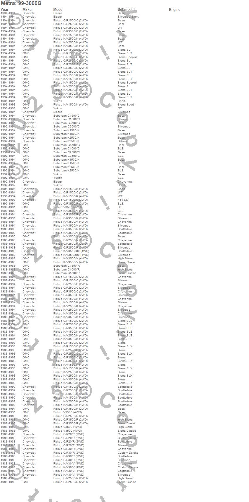 Blazer, C1500, C1500 Pickup, C1500 Suburban, C2500 Pickup, C2500 Suburban, C3500 Pickup, K1500, K1500 Pickup, K1500 Suburban, K2500 Pickup, K2500 Suburban, K2500 Suburban (Canadian), K3500 Pickup, R20 Pickup, R2500 Pickup, R30 Pickup, R3500 Pickup, V30 Pickup, V3500 Pickup more…