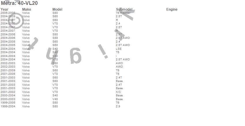 S40, S60, S80, V40, V70, Volvo, 2009, 2008, 2007, 2006, 2005, 2004, 2003, 2002, 2001, 2000, 1999 more…