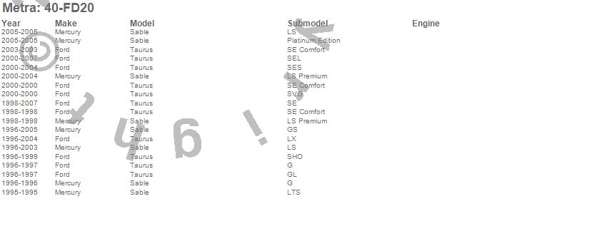 Sable, Taurus, Ford, Mercury, 2007, 2006, 2005, 2004, 2003, 2002, 2001, 2000, 1999, 1998, 1997, 1996 more…