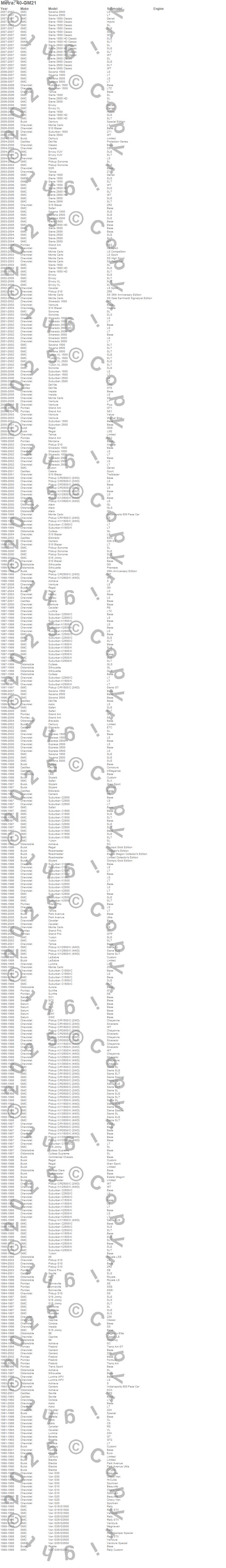 88, 98, Achieva, Alero, Astro, Aurora, Beretta, Bonneville, Bravada, C1500 Pickup, C1500 Suburban, C2500 Pickup, C2500 Suburban, C3500 Pickup, Camaro, Caprice, Catera, Cavalier, Century, Classic more…