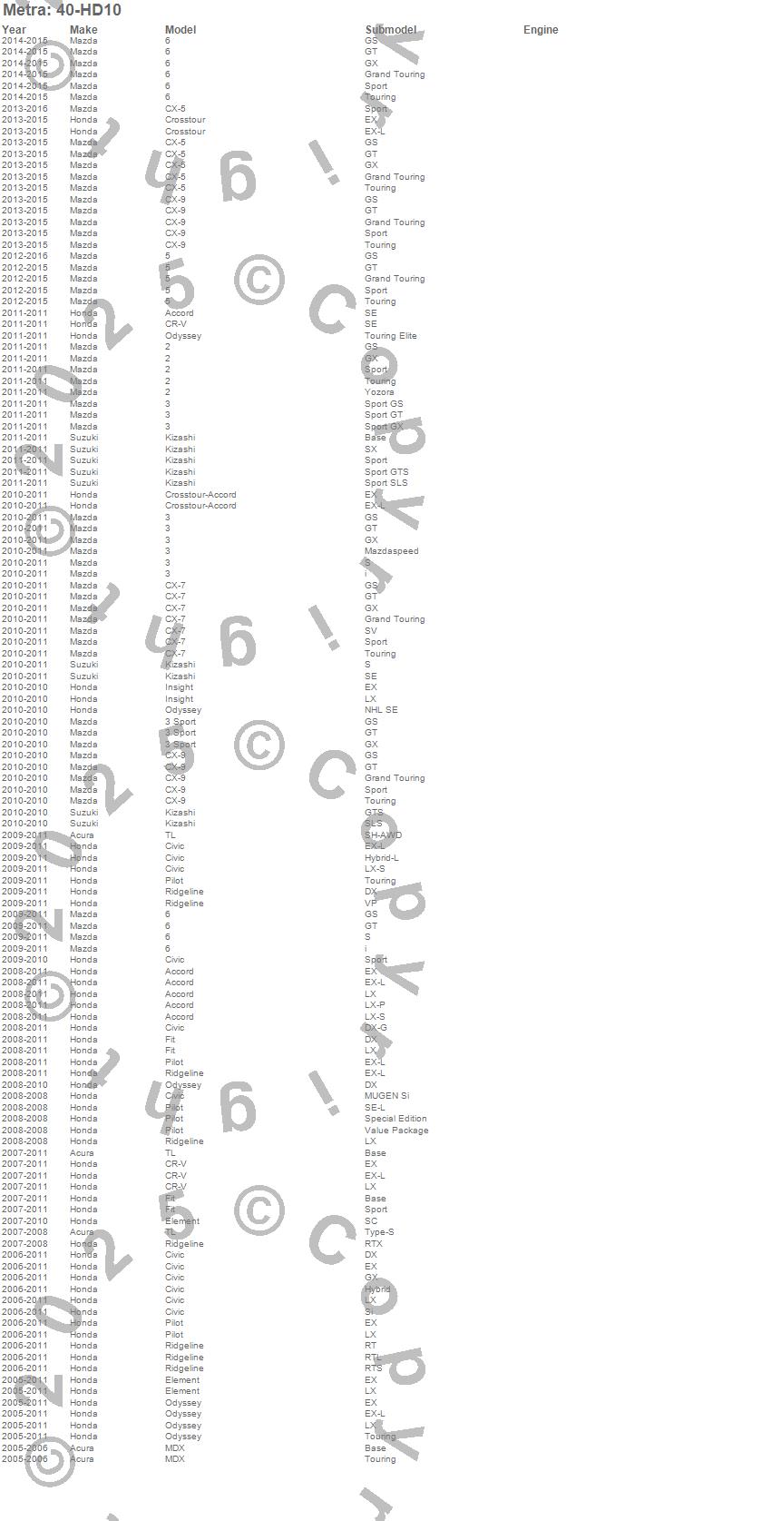 2, 3, 3 Sport, 5, 6, Accord, Accord Crosstour, Civic, CR-V, CX-7, CX-9, Element, Fit, Insight, Kizashi, MDX, Odyssey, Pilot, Ridgeline, TL more…