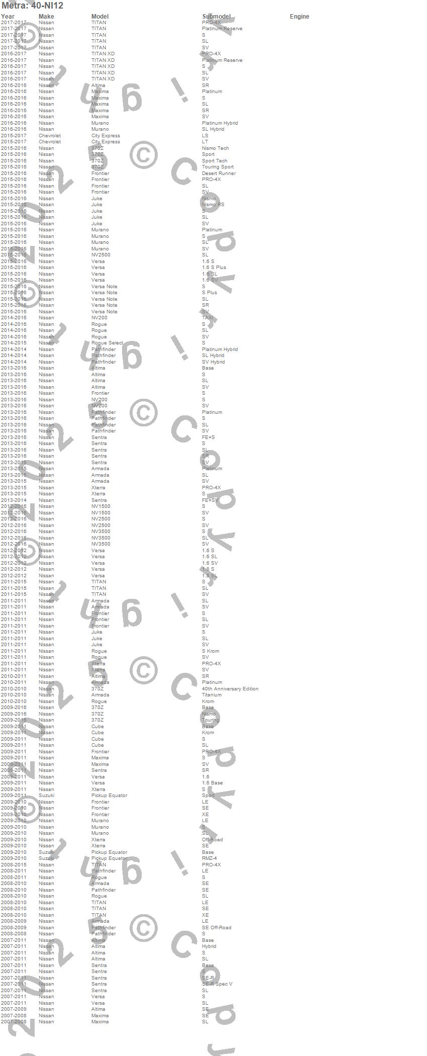 370Z, Altima, Armada, Cube, Equator, Frontier, Juke, Maxima, Murano, Pathfinder, Rogue, Sentra, Versa, Xterra, Nissan, Suzuki, 2012, 2011, 2010, 2009 more…