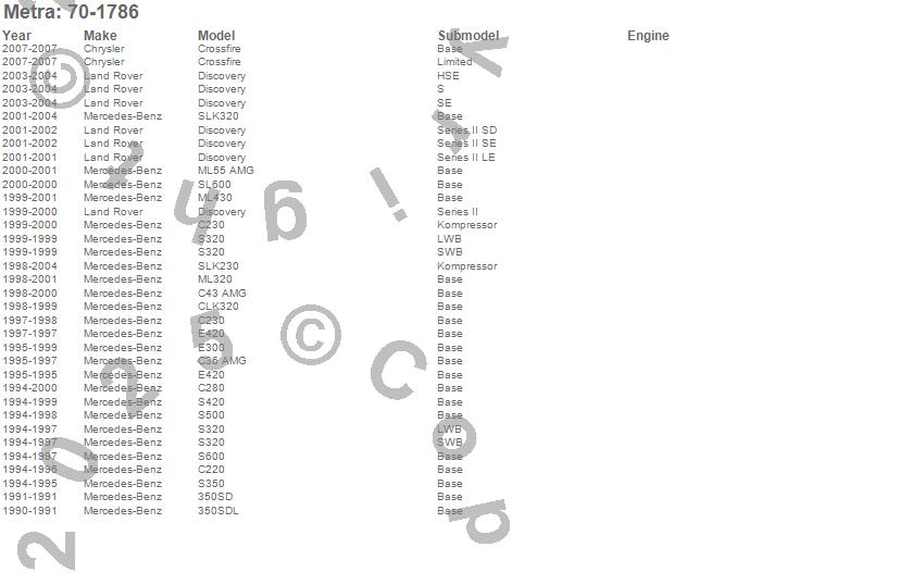 350SD, 350SDL, C220, C230, C280, C36 AMG, C43 AMG, CLK320, Crossfire, Discovery, E300, E420, ML320, ML430, ML55 AMG, S320, S350, S420, S500, S600 more…