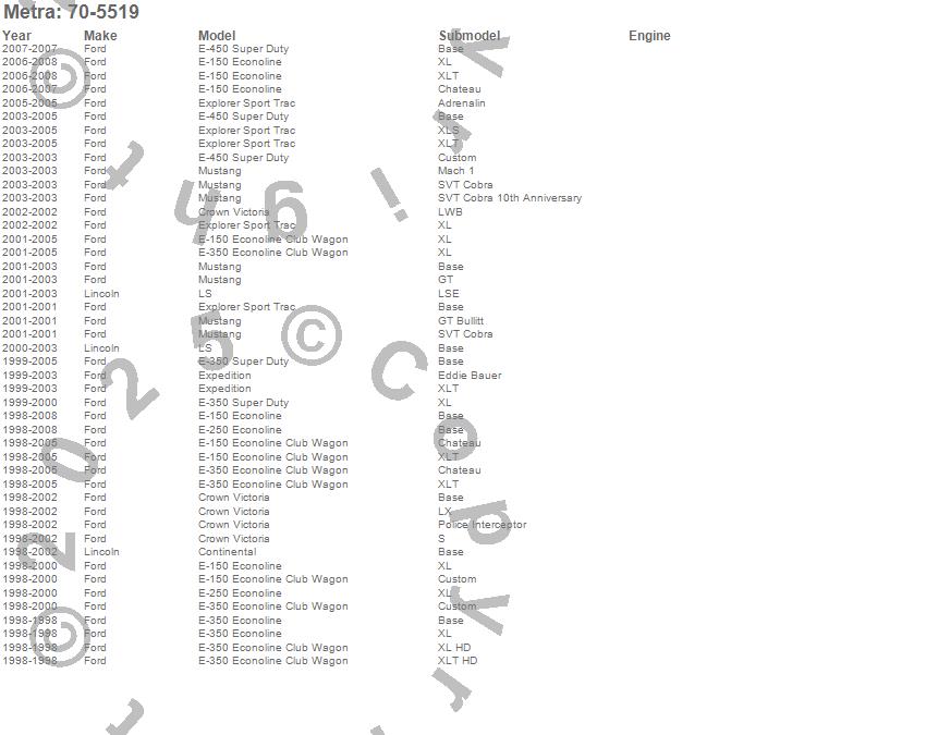 Continental, Crown Victoria, E-150 Econoline, E-150 Econoline Club Wagon, E-250 Econoline, E-250 Super Duty, E-350 Econoline, E-350 Econoline Club Wagon, E-350 Super Duty, E-450 Super Duty, E-450 Super Duty Stripped Chassis, Expedition, Explorer Sport Trac, LS, Mustang, Ford, Lincoln, 2008, 2007, 2006 more…