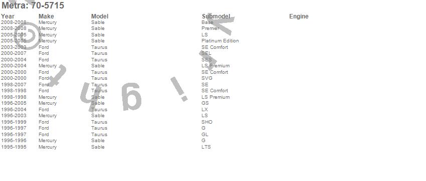 Sable, Taurus, Ford, Mercury, 2008, 2007, 2006, 2005, 2004, 2003, 2002, 2001, 2000, 1999, 1998, 1997, 1996 more…