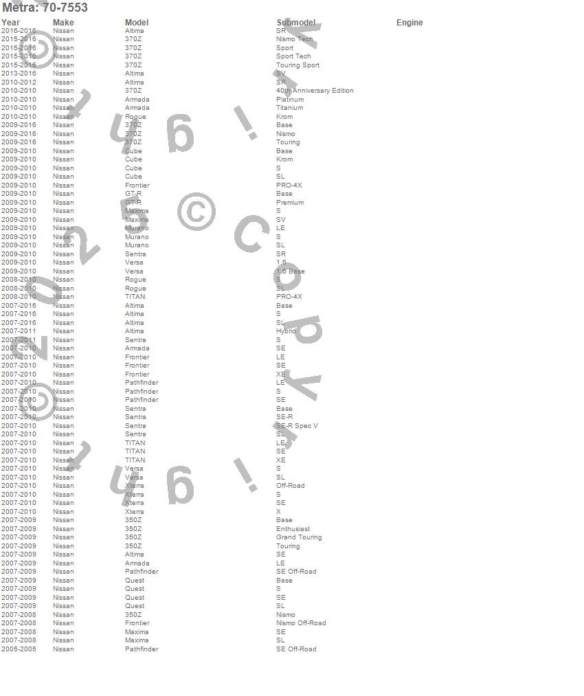350Z, 370Z, Altima, Armada, Cube, Frontier, GT-R, Maxima, Murano, Pathfinder, Quest, Rogue, Sentra, Titan, Versa, Xterra, Nissan, 2011, 2010, 2009 more…