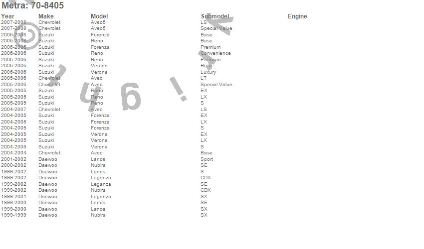 Aveo, Aveo5, Forenza, Lanos, Leganza, Nubira, Reno, Verona, Chevrolet, Daewoo, Suzuki, 2008, 2007, 2006, 2005, 2004, 2002, 2001, 2000, 1999 more…