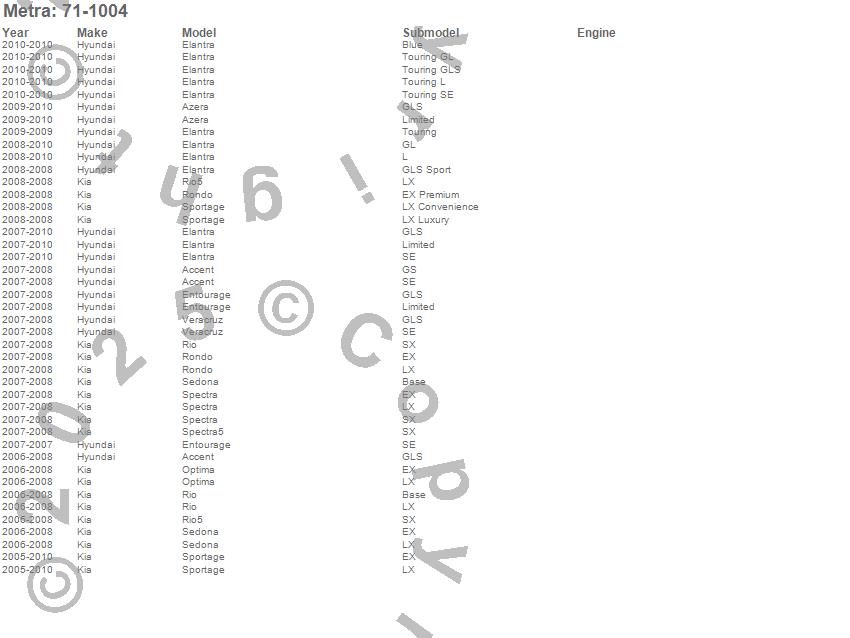 Accent, Azera, Elantra, Entourage, Optima, Rio, Rio5, Rondo, Sedona, Spectra, Spectra5, Sportage, Veracruz, Hyundai, Kia, 2010, 2009, 2008, 2007, 2006 more…