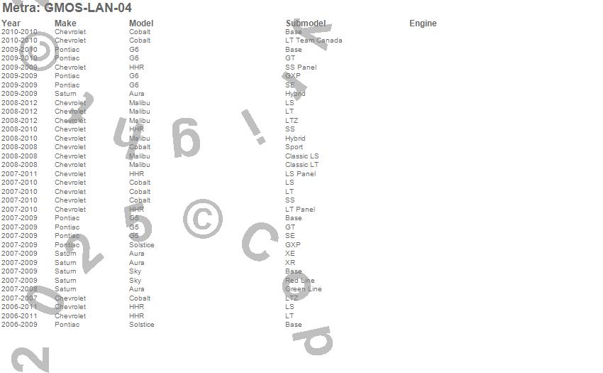 Aura, Cobalt, G5, G6, HHR, Malibu, Sky, Solstice, Chevrolet, Pontiac, Saturn, 2011, 2010, 2009, 2008, 2007, 2006 more…