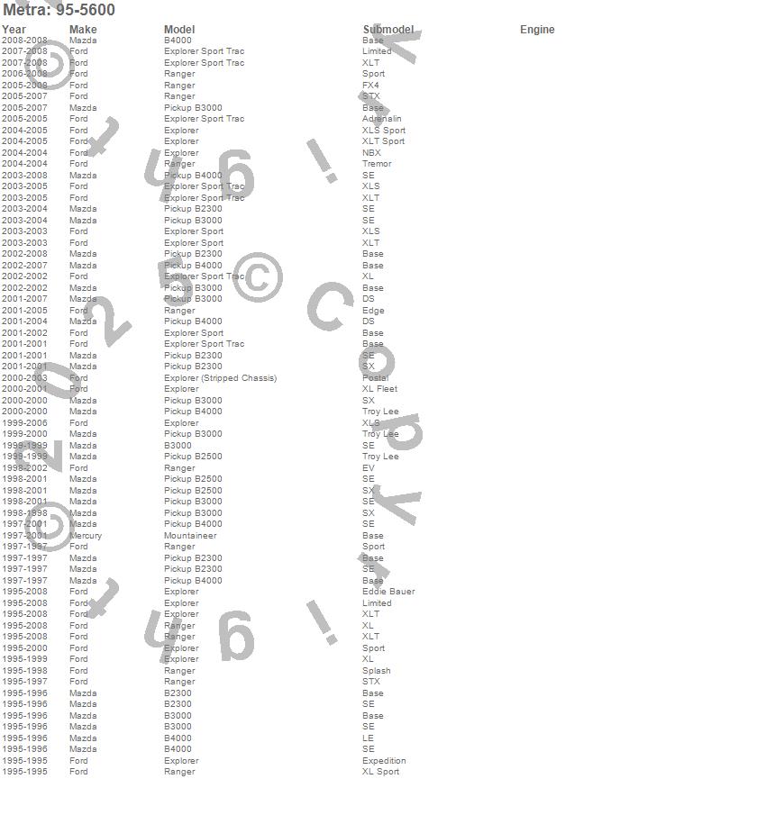 B2300, B2500, B3000, B4000, Explorer, Explorer Sport Trac, Mountaineer, Ranger, Ford, Mazda, Mercury, 2008, 2007, 2006, 2005, 2004, 2003, 2002, 2001, 2000 more…