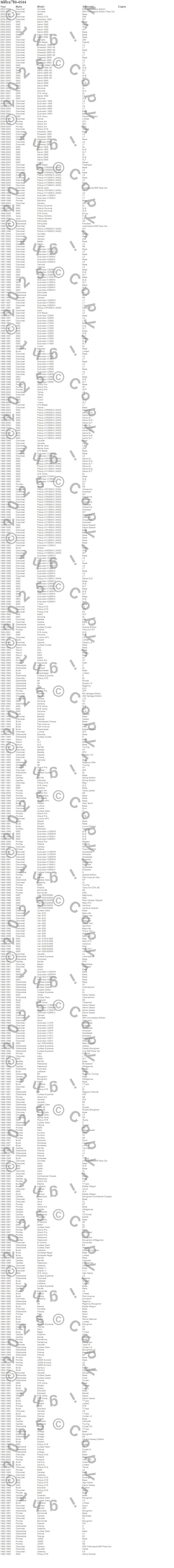6000, 88, 98, Achieva, Astro, Beretta, Blazer, Bonneville, Bravada, Brougham, C1500 Pickup, C1500 Suburban, C2500 Pickup, C2500 Suburban, C3500 Pickup, Camaro, Caprice, Cavalier, Celebrity, Century more…
