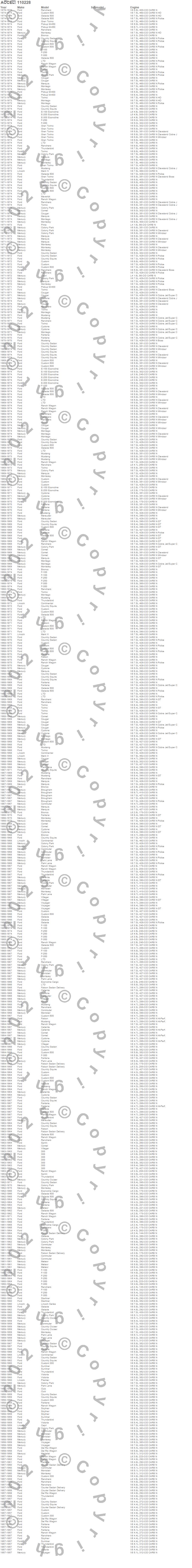 Breezeway, Bronco, Brougham, Caliente, Capri, Club Cargo, Colony Park, Comet, Commuter, Continental, Cougar, Country Cruiser, Country Sedan, Country Squire, Courier Sedan Delivery, Custom, Custom 300, Custom 500, Cyclone, Del Rio Wagon more…
