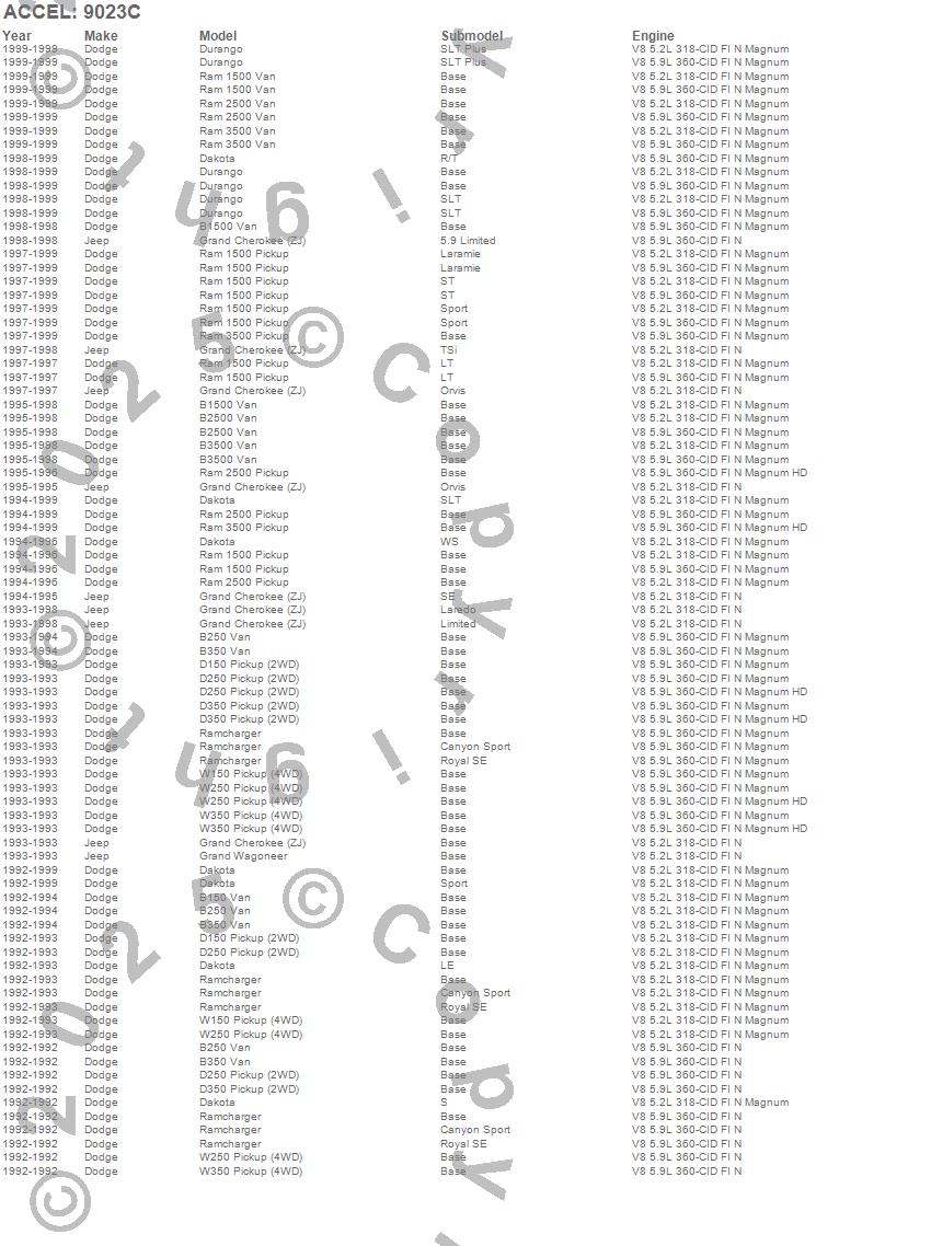 B150 Van, B1500 Van, B250 Van, B2500 Van, B350 Van, B3500 Van, D150 Pickup, D250 Pickup, D350 Pickup, Dakota, Durango, Grand Cherokee (ZJ), Grand Wagoneer, Ram 1500, Ram 1500 Van, Ram 2500, Ram 2500 Van, Ram 3500, Ram 3500 Van, Ramcharger more…