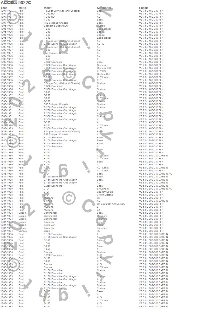Bronco, Capri, Continental, E Super Duty, E-100 Econoline, E-150 Econoline, E-250 Econoline, E-250 Econoline Club Wagon, E-350 Econoline, E-350 Econoline Club Wagon, F Super Duty, F-100, F-150, F-250, F-350, F53, LTD, Mustang, Town Car, Ford more…