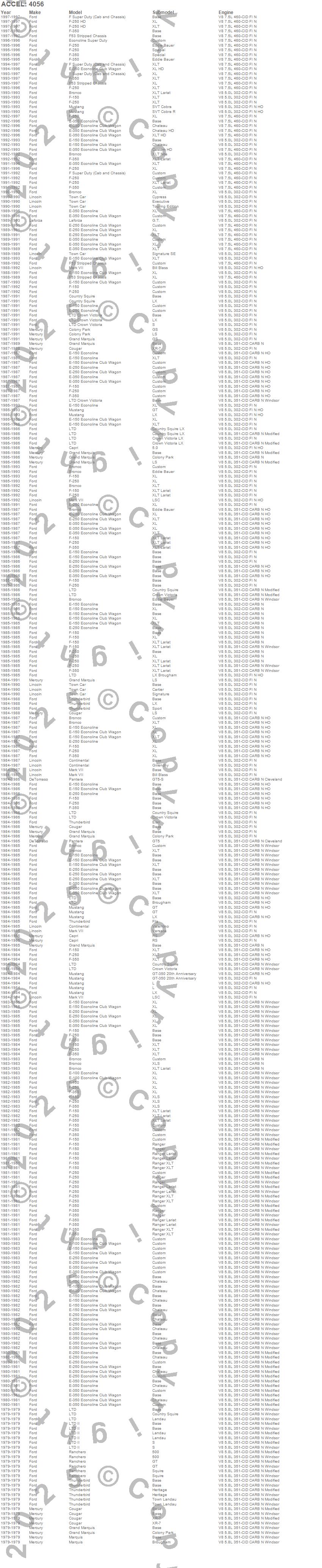 Bronco, Capri, Colony Park, Continental, Cougar, Country Squire, E Super Duty, E-100 Econoline, E-100 Econoline Club Wagon, E-150 Econoline, E-150 Econoline Club Wagon, E-250 Econoline, E-250 Econoline Club Wagon, E-350 Econoline, E-350 Econoline Club Wagon, F Super Duty, F-100, F-150, F-250, F-350 more…