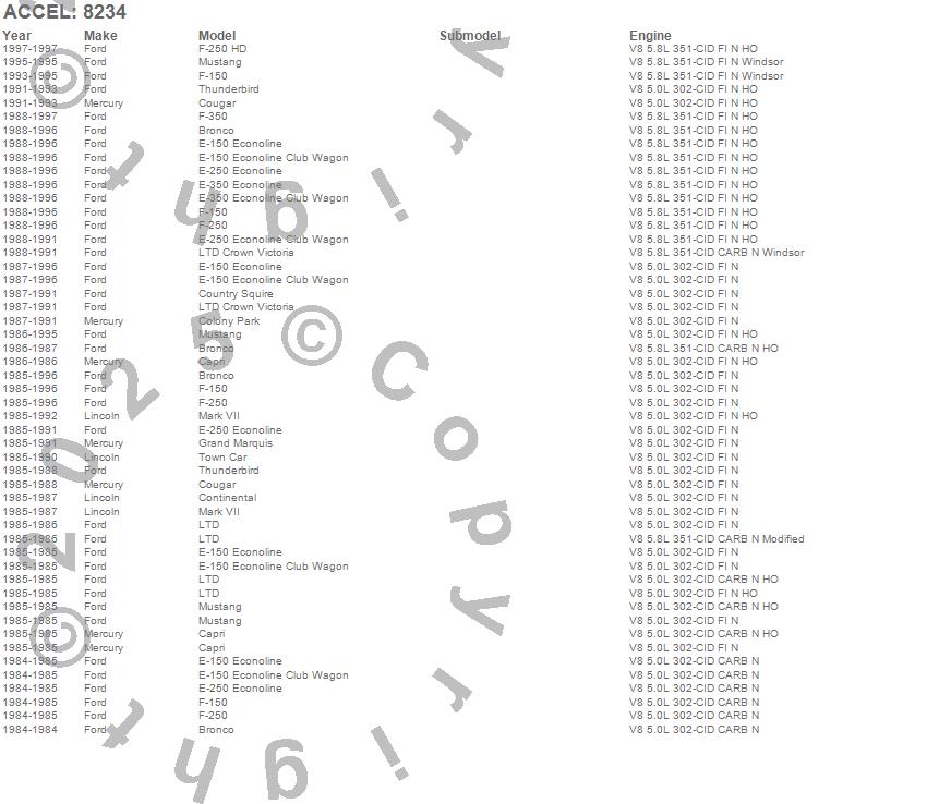 Bronco, Capri, Colony Park, Continental, Cougar, Country Squire, E-150 Econoline, E-150 Econoline Club Wagon, E-250 Econoline, E-250 Econoline Club Wagon, E-350 Econoline, E-350 Econoline Club Wagon, F-150, F-250, F-350, Grand Marquis, LTD, LTD Crown Victoria, Mark VII, Marquis more…