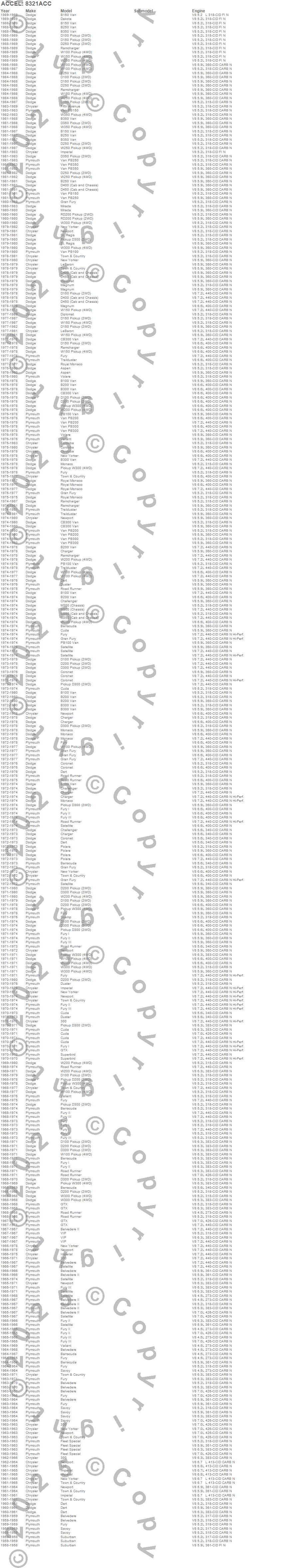 300, Aspen, B100 Van, B150 Van, B200 Van, B250 Van, B300 Van, B350 Van, Barracuda, Belvedere, Belvedere II, CB300 Van, Challenger, Charger, Cordoba, Coronet, Cuda, D100 Pickup, D150 Pickup, D200 Pickup more…
