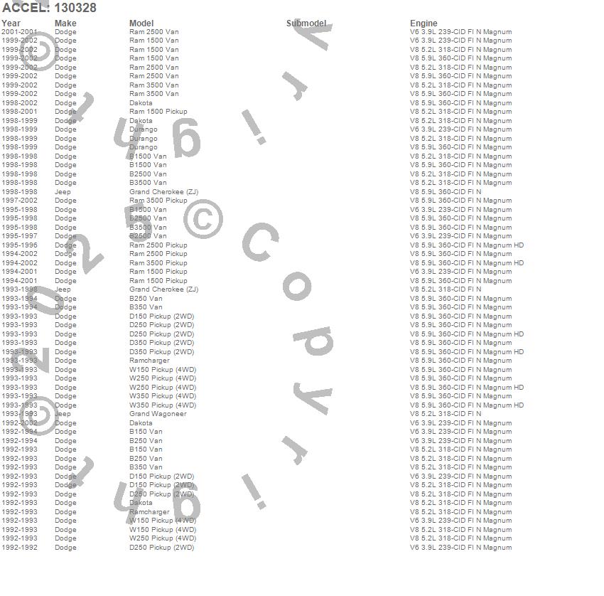 B150 Van, B1500 Van, B250 Van, B2500 Van, B350 Van, B3500 Van, D150 Pickup, D250 Pickup, D350 Pickup, Dakota, Durango, Grand Cherokee (ZJ), Grand Wagoneer, Ram 1500, Ram 1500 Van, Ram 2500, Ram 2500 Van, Ram 3500, Ram 3500 Van, Ramcharger more…